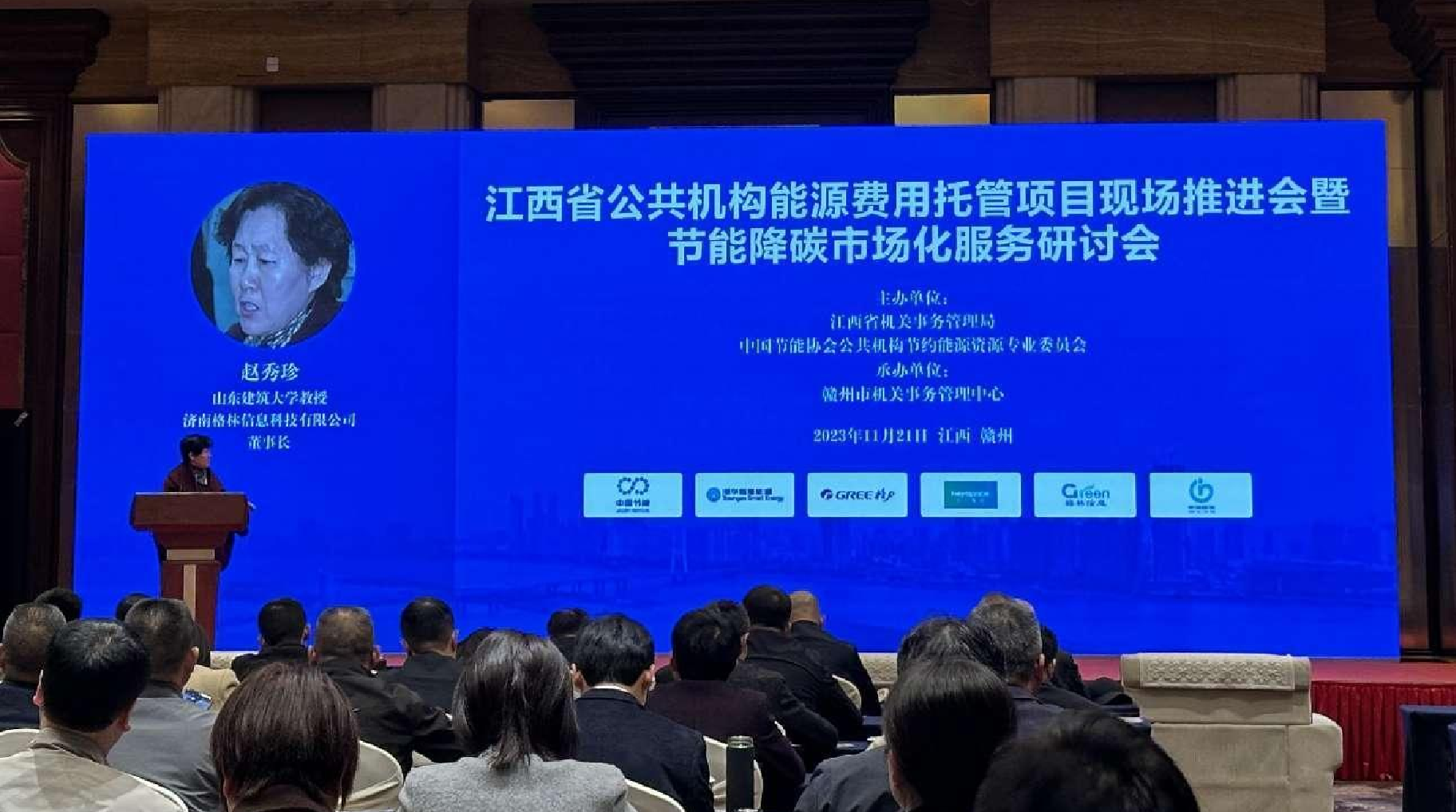 2023年11月22日,应中国节能协会、江西省机关事务管理局邀请,赵秀珍教授在江西省公共机构能源费用托管项目现场推进会暨节能降碳市场化服务研讨会上进行了发言授课。赵教授的发言引发广大参会人员的强烈共鸣,参会人员纷纷对公司用户侧精细化能源管控产品表现出浓厚兴趣。